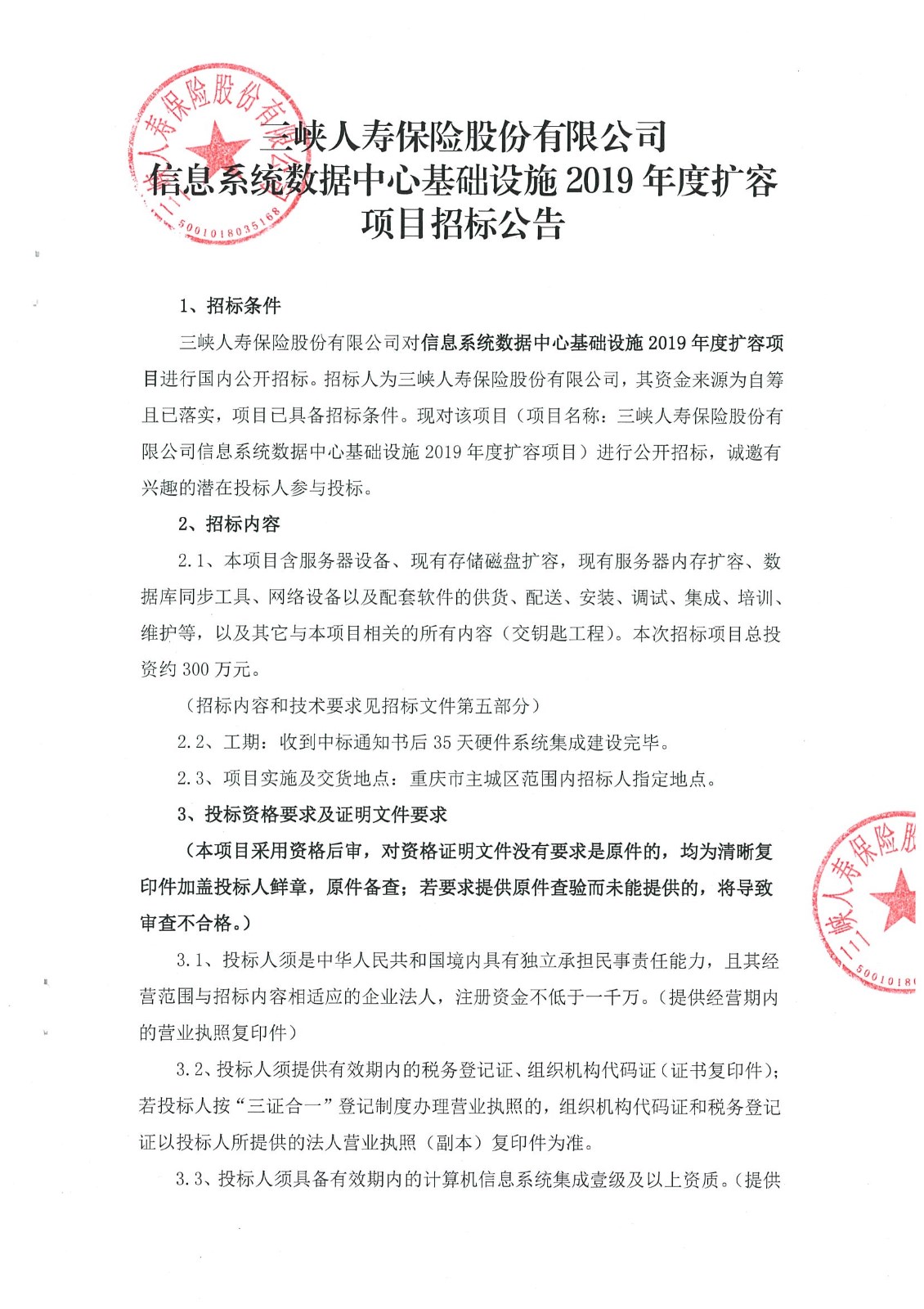 168体彩彩票信息系统数据中心基础设施2019年度扩容项目招标公告